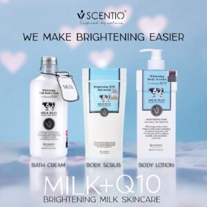 Scentio Milk Plus Q10 Body Lotion is a rich, smooth moisturizer infused with milk protein and Co-Enzyme Q10. The lightweight formula absorbs quickly into the skin, helping to keep it soft, nourished, and comfortable throughout the day.