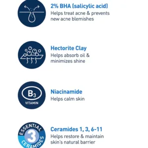CeraVe is the #1 dermatologist-recommended cleanser brand for acne*, and our Acne Control Cleanser with 2% salicylic acid is formulated to clear acne, reduce blackheads and improve the appearance of pores, while purifying clay helps absorb excess oil.