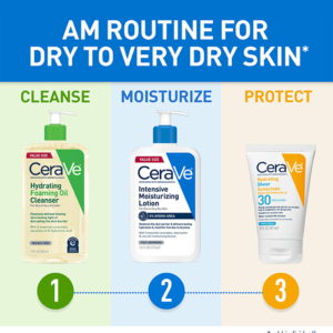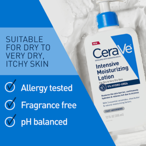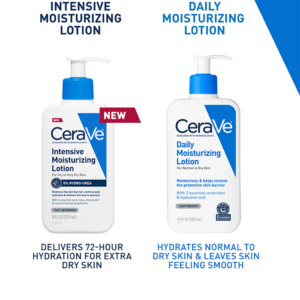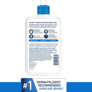 CeraVe Intensive Moisturizing Lotion is formulated with three essential ceramides, MVE Delivery Technology, and Hydro-Urea™ Technology to intensely hydrate extra-dry skin and help restore and strengthen the skin barrier without any greasy or sticky residue.
