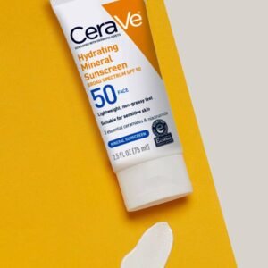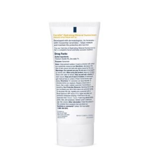 CeraVe Hydrating Mineral Sunscreen Face Lotion with Broad Spectrum SPF 50 is a 100%-mineral, oil-free sunscreen with titanium dioxide and zinc oxide that forms a protective barrier on your skin’s surface to help reflect the sun’s UVA and UVB rays without irritating sensitive skin.